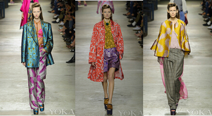 不仅是色彩上的大胆撞色,还有面料的材质及花型方面,都有所体现。越来越多的女性,更青睐于设计师品牌,不仅能私人定制,而且能独一无二。