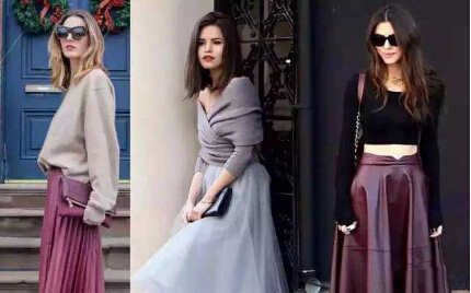 二、 针织衫+优雅伞裙