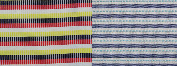 梭织提花条纹最容易驾驭却因为担心过度复杂而很难搭配,因此提到不同条纹的混搭很多人更是想都不想就拒绝,全然不知自己错过了多少精彩。粗细的结合,不同颜色的搭配,横竖的组合都是美的再创造。条纹的元素在街头随处可见,但敢于挑战条纹相加的人却不在多数,然而时尚永远只掌握在"敢"的人手里,这件类似蒙德里安的线条集合,能让自己成为一道独特的风景。