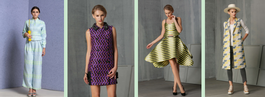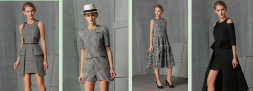 第一是.黑&白的搭配,黑白组合和全身黑本季占据主导地位,带来优雅感和时代气息。这些色彩用在梭织提花面料上时,打造出引人注目的图形;全身黑采用复杂精致的装饰时,十分吸睛。采用对比性色块时,打造出活力、运动的气息。下图的4款样衣,小编是真的大爱啊!!