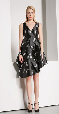 穿V领的梭织提花连衣裙,最大好处并不是任性的释放小性感,而是在视觉上帮你打造巴掌小脸。有了V领,不用苦于找最佳角度,只要摆好合适的姿势,"咔嚓"一下,就足够了。经典不厌的小黑裙,搭乘了V领这趟顺风车,就一定会将爱自拍的姑娘们送到令你们满意的目的地。