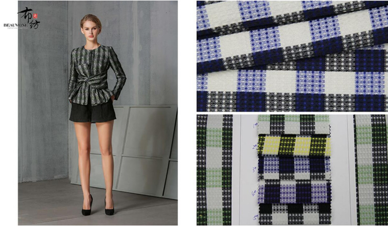 梭织提花面料不管从连衣裙,外套,短裤都跳跃性的遍布各大服装品牌,兴丰-布衣纺更是专业研制开发并拥有时尚设计理念开发团队,每款面料依据适合季节,调制出流行色系的配色,领携时尚!