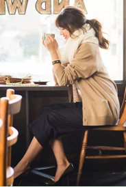 甜美动人的奶茶色针织开衫,搭配大热阔腿裤,打造清甜又具有休闲感的成熟造型,温暖十足的宽大围巾营造温暖动人的慵懒感,完美的治愈系搭配;