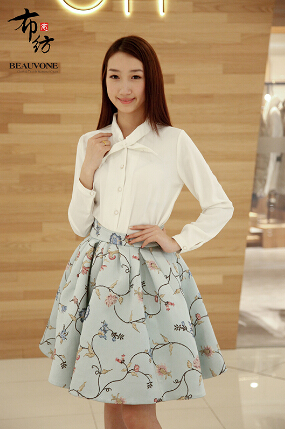 洁白色衬衫百搭型休闲款,视觉质感十分优美,配上“巨型”大提花半身裙,显腿瘦!
