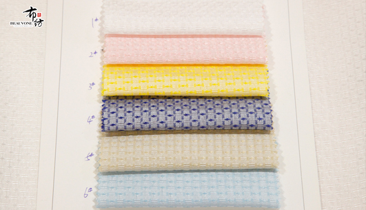 布衣纺色织提花面料拥有鲜明的颜色对比。