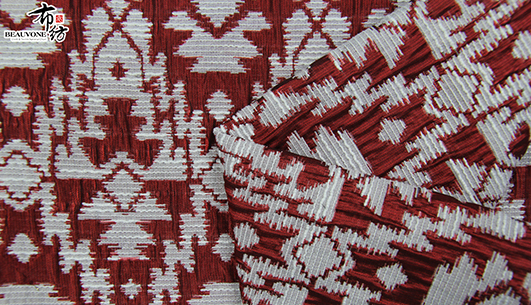 布衣纺色织提花面料拥有鲜明的颜色对比。