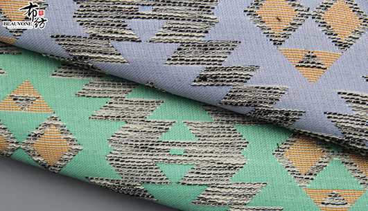 布衣纺色织提花面料拥有鲜明的颜色对比。