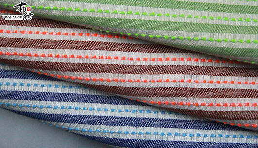 布衣纺色织提花面料拥有鲜明的颜色对比。