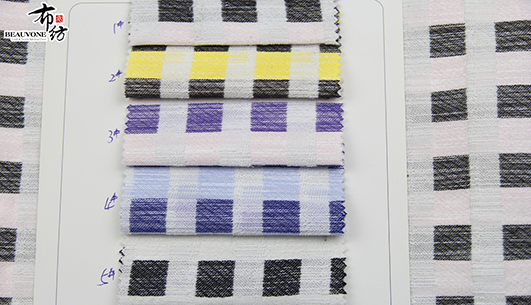 布衣纺色织提花面料拥有鲜明的颜色对比。