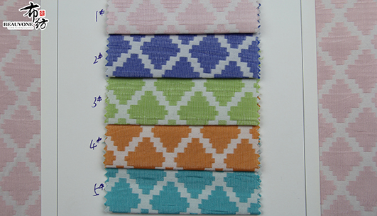 布衣纺色织提花面料拥有鲜明的颜色对比。