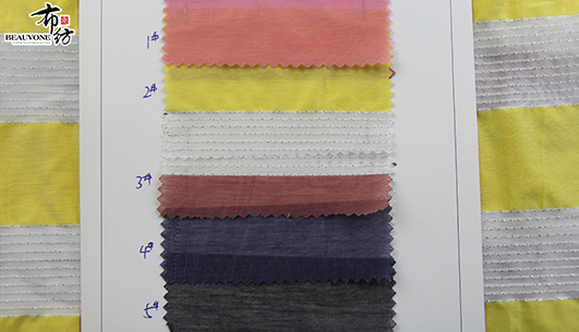 布衣纺色织提花面料拥有鲜明的颜色对比。
