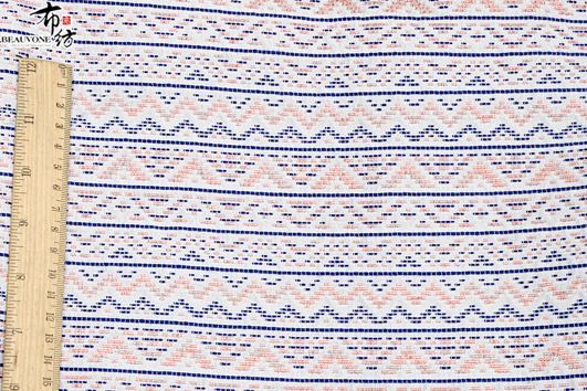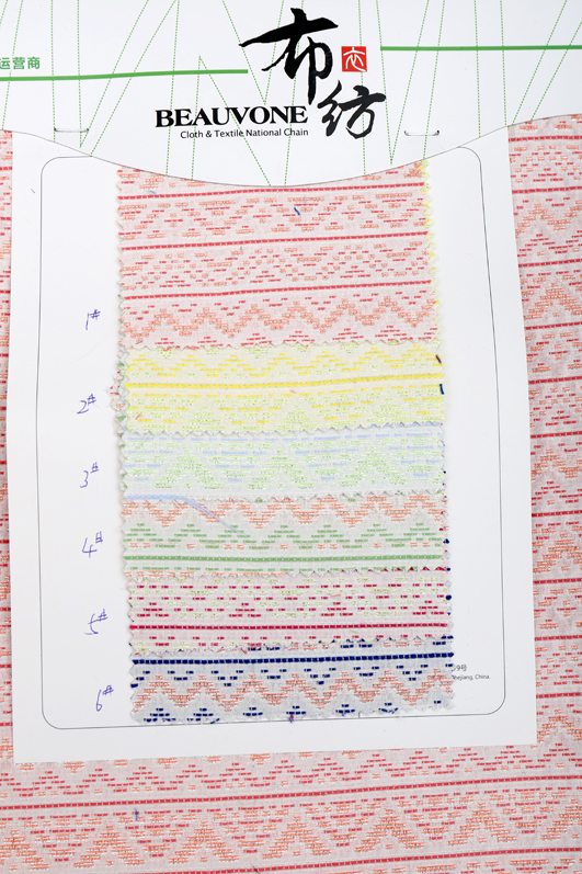 布衣纺色织提花面料拥有鲜明的颜色对比。