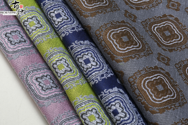 布衣纺色织提花面料拥有鲜明的颜色对比。