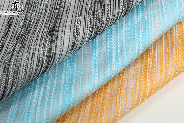 布衣纺色织提花面料拥有鲜明的颜色对比。