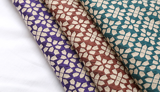 布衣纺色织提花面料拥有鲜明的颜色对比。