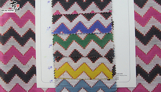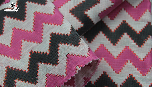 布衣纺色织提花面料拥有鲜明的颜色对比。