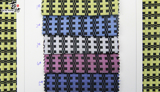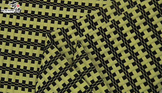布衣纺色织提花面料拥有鲜明的颜色对比。