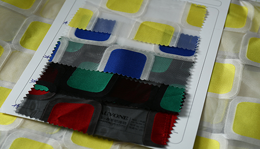 布衣纺色织提花面料拥有鲜明的颜色对比。