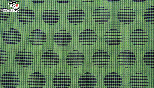 布衣纺色织提花面料拥有鲜明的颜色对比。