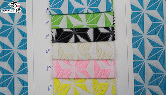 布衣纺色织提花面料拥有鲜明的颜色对比。