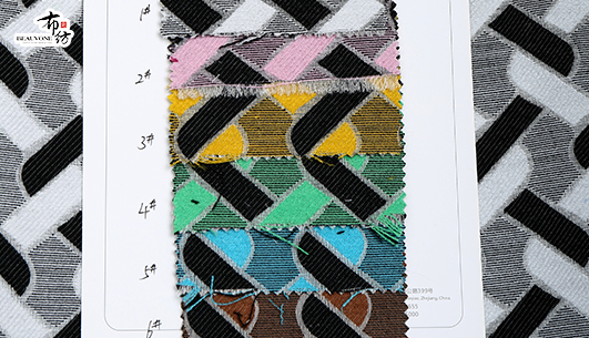 布衣纺色织提花面料拥有鲜明的颜色对比。