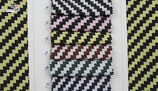 布衣纺色织提花面料拥有鲜明的颜色对比。