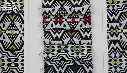 布衣纺色织提花面料拥有鲜明的颜色对比。