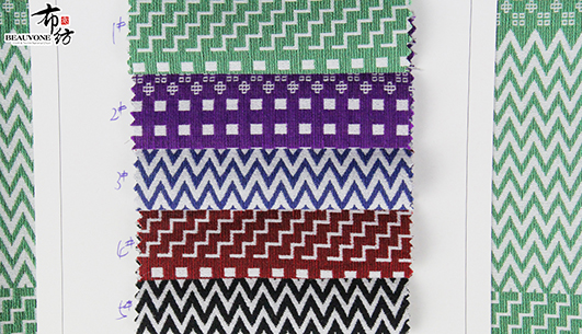 布衣纺色织提花面料拥有鲜明的颜色对比。