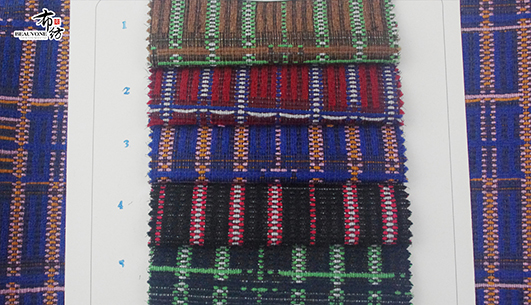布衣纺色织提花面料拥有鲜明的颜色对比。